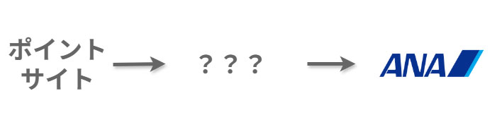 でも、ある日シンプルな図解を見つけて衝撃を受けました。ANAマイル交換の基本は「ポイント → 中継ポイント → ANAマイル」というたった3ステップだったのです。つまり、最初に集めるのは楽天ポイントやVポイントなど身近なポイント。次に、それを“中継地点”と呼ばれるルートに流し込み、最終的にANAマイルへ移行するだけ。